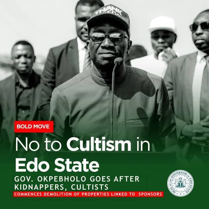 Governor Monday Okpebholo of Edo State has launched a statewide crackdown on crime by initiating the demolition of properties linked to kidnapping, cultism, and other violent criminal activities.